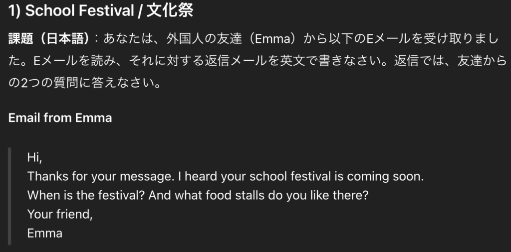 - まとまった文章を聞く。文章は未習または既習のもの。