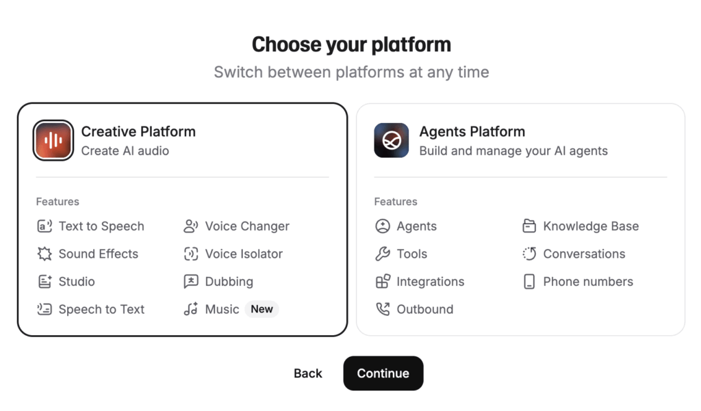 プラットフォームの選択画面が表示されますので、Creative Platform を選択します。