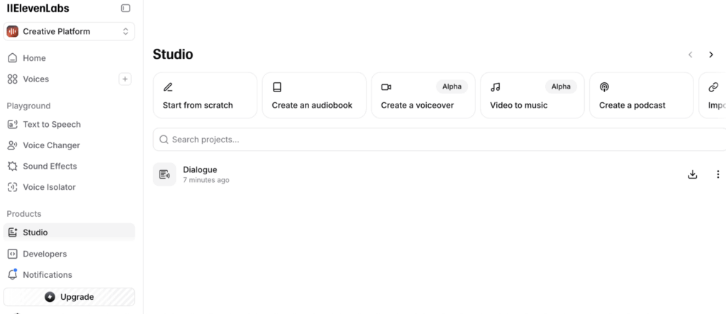 無事にアカウントを作り終えたら、左側のタブから、Studio を選択して、Start from scratch を選択します。