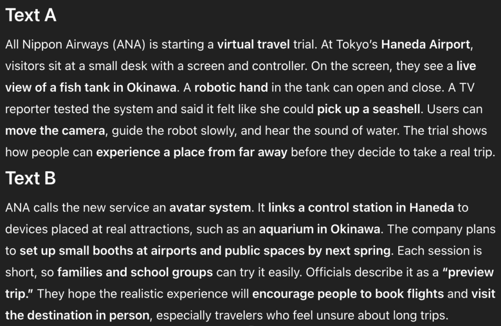 作成された英文がこちら。同様のレベルで、似たようなトピックで、同じような語彙を使って作成されています。