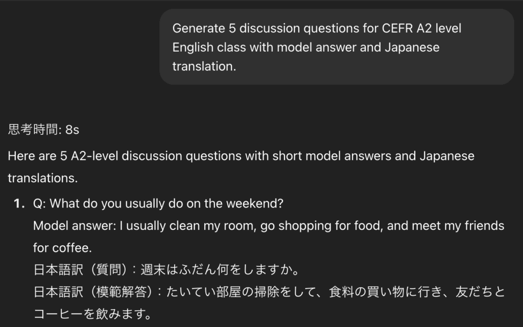 授業準備に追われる毎日を、“時短モード”にしませんか。本記事では、生成AI(ChatGPT ほか)を授業準備に直結させる実例を、そのまま使えるプロンプトと一緒にまとめました。文法チェック・例文作成、スピーキング問題、ライティング課題、ディクテーション/シャドーイング音声(TTS)、四択・会話リスニング、ディクトグロス/Jigsaw Reading/Info Gapまで、CEFR準拠のレベル指定で素材を量産。NarakeetやElevenLabs、ImageFXなど無料・低コストのツールも併用し、教材クオリティを保ちながら準備時間を大幅短縮しましょう!