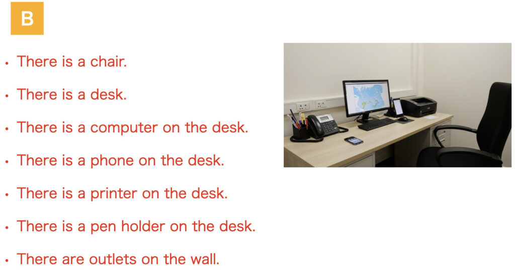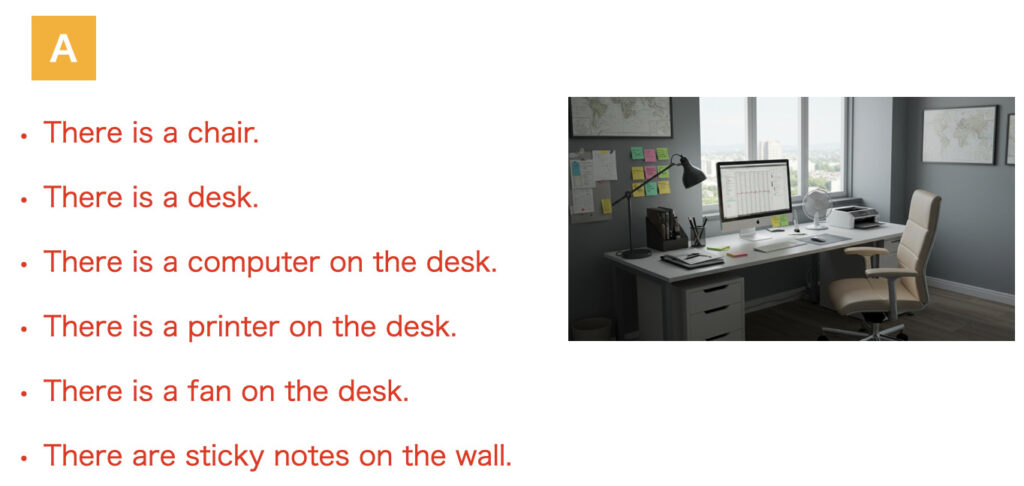 Chat GPT などでストーリーテリング用の画像を作成するプロンプトです。今回は英検2級の問題をイメージして作成してもらいました。